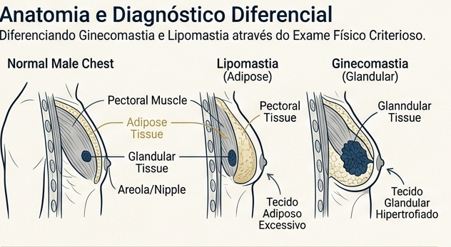 Sim. Ginecomastia envolve tecido glandular; lipomastia é apenas gordura.